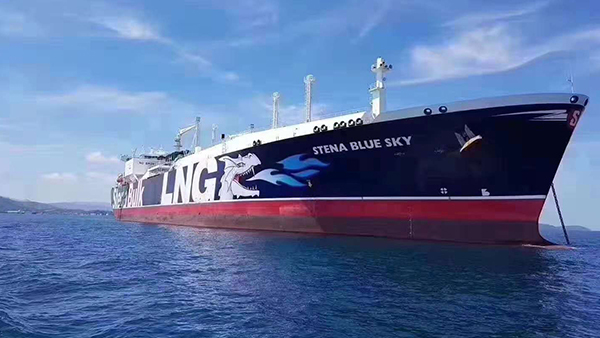 2018年8月7日,世界上美麗的LNG“藍(lán)天”號靠泊新奧舟山LNG接收站海港。“藍(lán)天(STENABLUE SKY)”輪船籍巴拿馬,船長285.40米,寬43.40米,載14.5萬立方LNG由卡塔爾開航駛來舟山港。該輪以其獨(dú)特的外觀和炫麗的彩繪圖案贏得全球美的LNG船舶稱號。